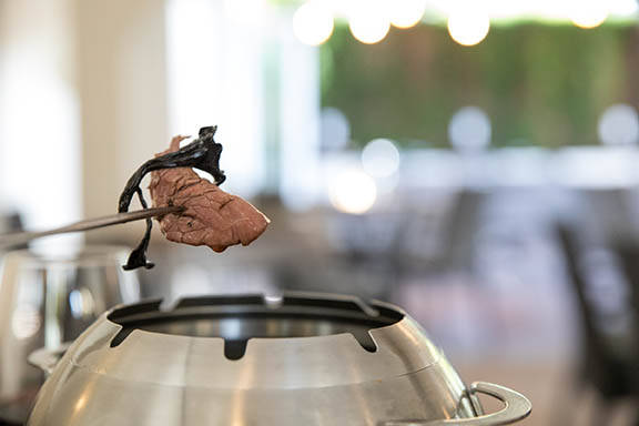 Con­ven­ci­dos que esta opción gas­tro­nó­mi­ca es per­fec­ta para cual­quier momen­to vaya­mos con quién vaya­mos, el sen­ti­mien­to de “estar a gus­to” se ha ase­gu­ra­do. Encuen­tras tran­qui­li­dad sin pér­di­das de tiem­po a la hora de errar en la elec­ción de cual­quie­ra de sus pla­tos. Des­cu­bri­mos una coci­na de tra­za­do inter­na­cio­nal, más bien muti­cul­tu­ral. Car­ta de sen­ti­do clá­si­co puris­ta, com­pues­ta por entra­das frías, entra­das calien­tes, car­nes clá­si­cas, car­nes a la pie­dra (ter­ne­ra, can­gu­ro, cier­vo), pes­ca­dos; fon­dues; menús y pla­tos para niños y cerra­mos la ofer­ta con un menú del día. Exce­len­te y muy acer­ta­da toda su ofer­ta, pero a des­ta­car su solo­mi­llo de ter­ne­ra, la famo­sa fon­due de que­so al cava o la equi­li­bra­da ensa­la­da mix­ta. Res­pec­to a los pos­tres case­ros, te brin­dan la opor­tu­ni­dad de pro­bar entre otros un deli­ca­do hela­do de fre­sa, una sabro­sa tar­ta­le­ta de fru­tas y un señor sor­be­te de fru­tas, desa­rro­llan­do otros esti­los e inter­pre­ta­cio­nes con nue­va repos­te­ra.