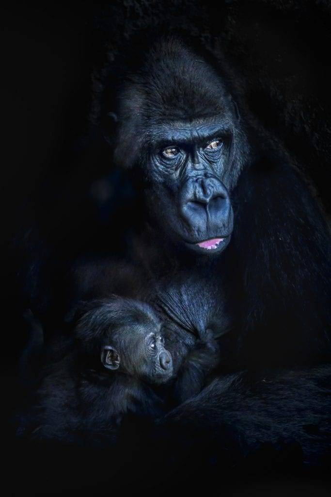 Para esta exposición se han seleccionado 26 imágene, verdaderas “obras de arte fotográfico”en las quelos protagonistas son los dos grupos de gorilas. El reproductor formado por el macho espalda plateada Mambiede 28 años y tres hembras que han tenido todas crías en Valencia. Alitiene 19 años y es madre de Félix, el bebé que nació el pasado 11 de abril de este año y Eboque cumple 7 años este mes y fue el primer gorila nacido en la Comunitat Valenciana; Nalanide 13 años es madre deVirunga, que en agosto cumplió 3 años; por último, Fossey,que lleva este nombre como homenaje a la primatóloga Dian Fossey yque hoy cumple 20 años, es madre dePepe,de 19 meses. Esta “familia” está incluida en el Programa Europeo de Conservación de Gorilla gorilla gorilla una de las especies catalogadas en “peligro crítico” en la Lista Roja de la Unión Internacional para la Conservación de la Naturaleza. En el grupo de “machos solteros” podemos contemplar a dos imponentes gorilas: Jitu, el más mayor que ayer día 15 cumplió 36 añosy Kabuli, un joven de 15 años.