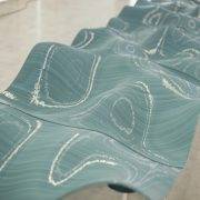 Al acce­der al espa­cio, estruc­tu­ra­do en tres zonas, el visi­tan­te es reci­bi­do por una pie­za de gran­des dimen­sio­nes que evo­ca el mar, una ola de sie­te metros de lon­gi­tud. Fabri­ca­da con impre­sión 3D con un bra­zo robó­ti­co en los talle­res de Naga­mi, a par­tir del dise­ño de Serrano y Basel­ga. La ola está rea­li­za­da de PETG 70% reci­cla­do y 100% reci­cla­ble.