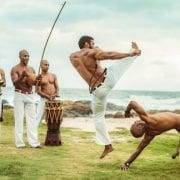 La capoei­ra es un espec­ta­cu­lar arte de lucha afro­bra­si­le­ño.