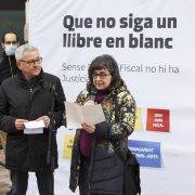 Adolf Beltrán y Cristina Durán leyeron el manifiesto oficial de la campaña por una justicia fiscal. Foto: Ana Enguídanos.