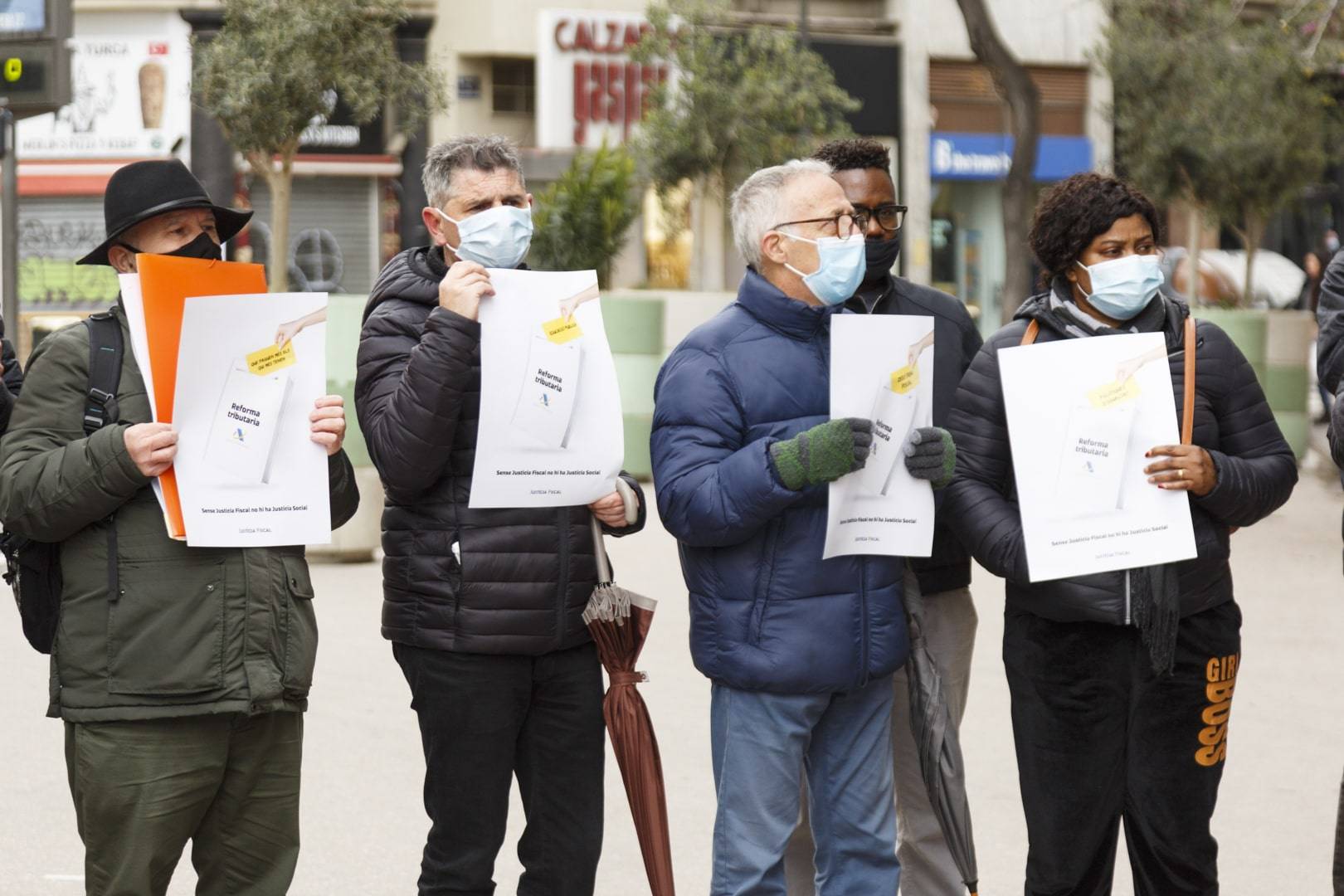 El acto central de la Campaña, con el lema “La reforma tributaria: Que no sea un libro en blanco”, tuvo lugar este lunes en Valencia, ante la Delegación de Hacienda.