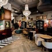 Café Madrid es protagonista indiscutible de Marques House y los cuadros rehabilitados de la época nos mirarán igual que lo hicieron con muchas generaciones de artistas. Zdenka Lara y Sandra Figuerola logran que Café Madrid renazca creando ese mismo ambiente clásico y bohemio. Los cócteles de Iván Talens y la cocina de Nacho Romero con toques exóticos de todas partes del mundo y con platos clásicos de Kaymus, harán el resto.