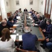 VALENCIA 2020-03-13 L’alcalde de Valèn­cia, Joan Ribó, acom­pan­yat d’altres mem­bres de l’equip de govern, pre­si­dix la ses­sió extra­or­di­nà­ria i urgent de la Jun­ta Local de Pro­tec­ció Civil.