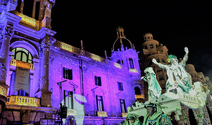 Los Reyes Magos llegarán a la ciudad por mar y recorrerán las principales calles del centro urbano en un desfile que estará acompañado por carrozas, bailarines, recreaciones de personajes históricos valencianos y la estrella de Oriente, junto a otros protagonistas de la fiesta como el paje Miquel, la mensajera Caterina, el senyor Carbó, Dolça y la fábrica de caramelos, la astrónoma Perseida o el becari Trapatroles. La cabalgata se celebrará bajo el lema general “Mission Valencia Ciudad Neutra”.