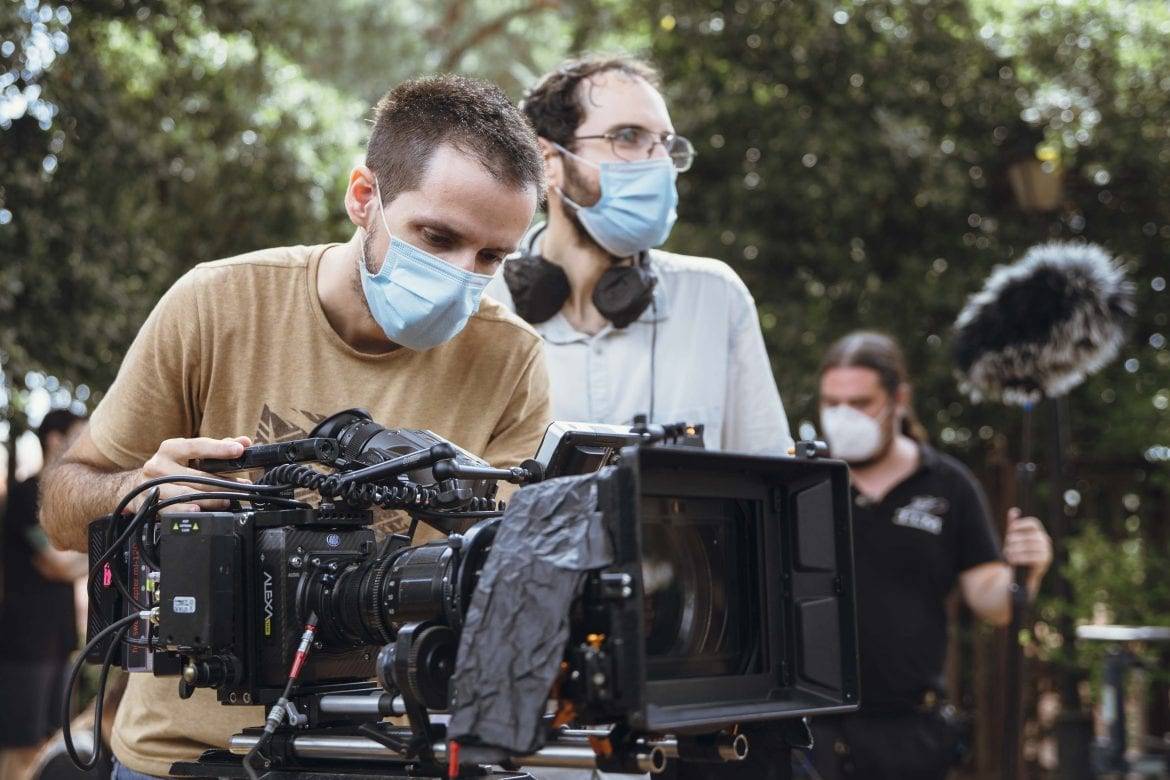 Roda­je de “Visi­tan­te”, con el direc­tor Alber­to Evan­ge­lio y el direc­tor de foto­gra­fía Gui­llem Oli­ver.