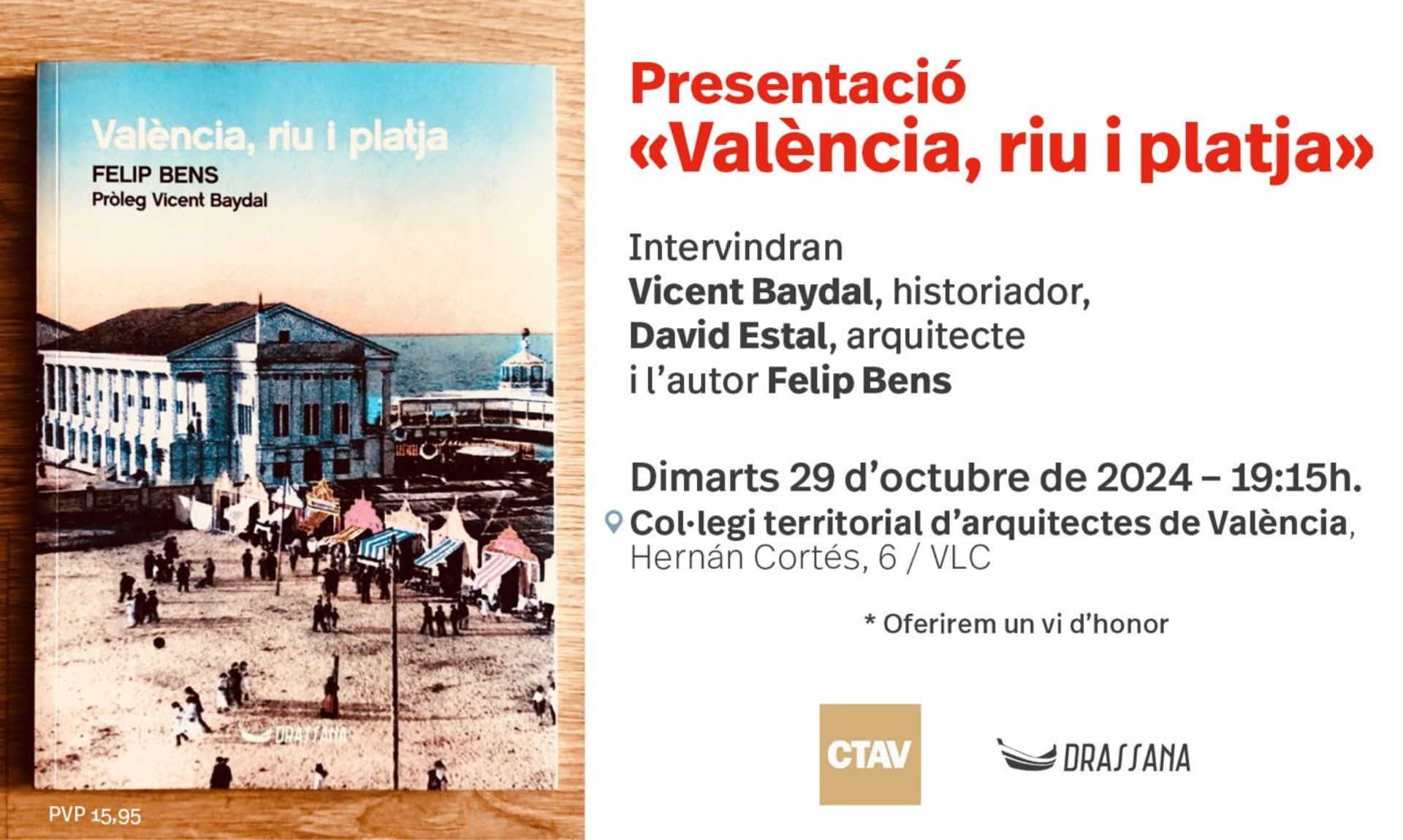 En darrer terme, el llibre conté un toc personal, molt íntim, pertanyent a la quotidianitat del seu autor: el fet de ser pare de dos xiquets menuts passats els 50 anys. És, en realitat, el primer dels textos del llibre, però és l’ornament que fa del conjunt de València, riu i platja un combinat suggestiu, saborós, refrescant i extraordinàriament deliciós, que es presenta este dimarts 29 d’octubre a les 19:15 hores en el Col·legi Territorial d’Arquitectes de València (C/ Hernan Cortés, 6), de la mà del mateix autor, Felip Bens, de l’historiador i prologuista del llibre Vicent Baydal i de l’arquitecte David Estal.