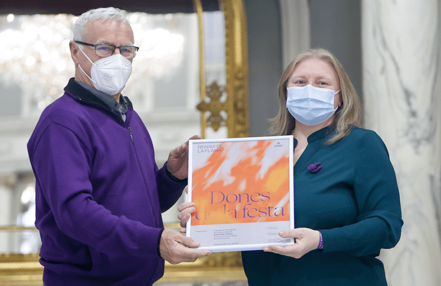 En l’acte tam­bé ha par­ti­ci­pat la falle­ra major, Car­men Mar­tín, qui ha defés el paper de les dones “pre­pa­ra­des i com­pro­me­ses” i ha apro­fi­tat l’oportunitat “per a deman­dar igual­tat per totes les dones del món”. Per últim, les pre­mia­des han agraït el guar­dó per un tre­ball “en mol­tes oca­sions invi­si­bles”, i ho han rebut com “una emprem­ta per con­ti­nuar tre­ba­llant per la igual­tat”, i amb l’objectiu de “rei­vin­di­car la seua pre­sen­cia i la de les seues pre­de­ces­so­res en la memò­ria col·lectiva, amb el corres­po­nent reco­nei­xe­ment pro­fes­sio­nal”.