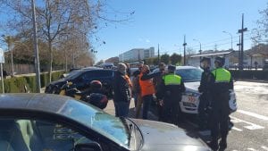 Algunos manifestantes conversan con la policía en la Avenida Tarongers, de donde salió la protesta. Foto: Zulema Alcaraz.