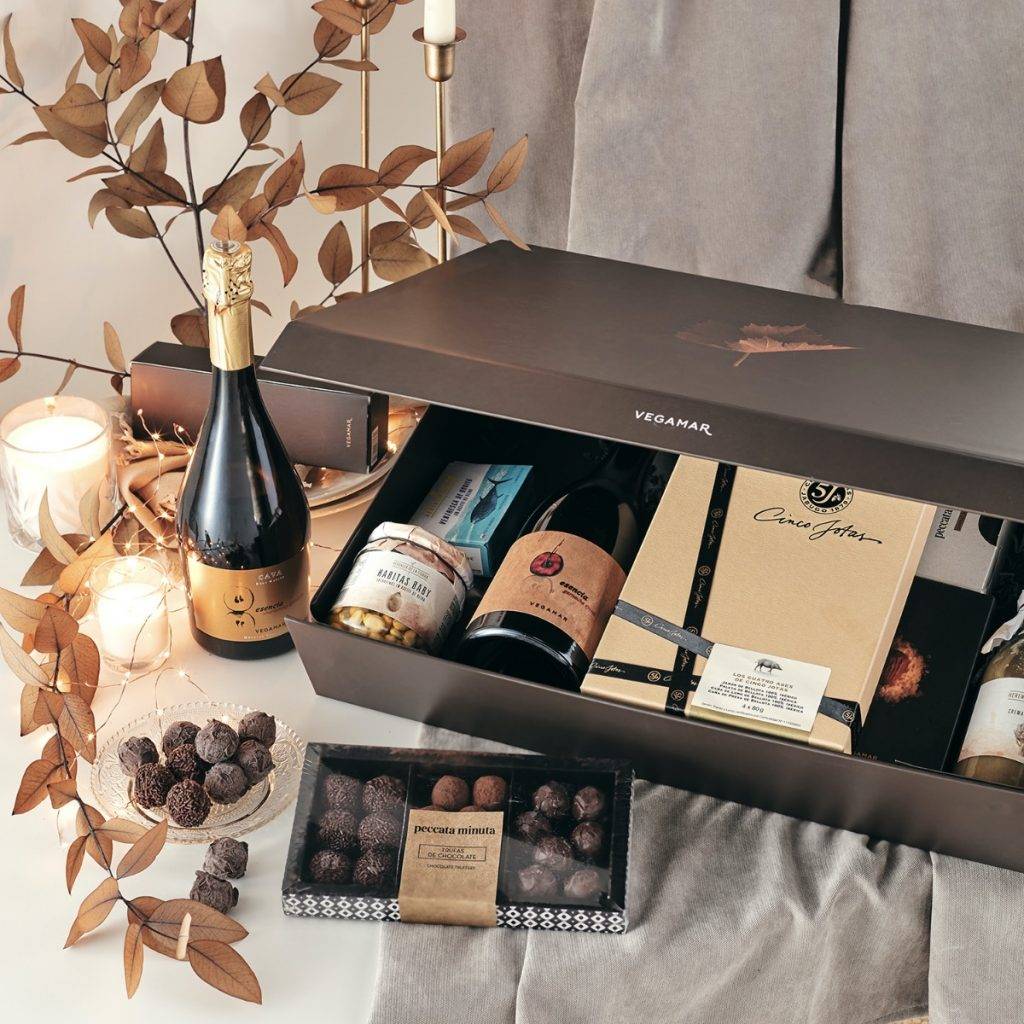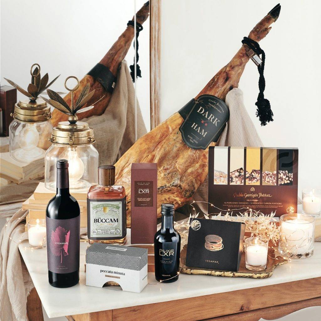 Y si eres amante del jamón ibérico de bellota, elige los Vegamar 5 Jotas Esta año, Vegamar ha creado cinco propuestas de pack con Jamón ibérico de bellota 5 jotas, la mejor propuesta de vinos Vegamar, Crianza, Reserva y Esencia, así como queso curado 100% Oveja, conservas del mar y de la tierra, como la ventresca de Bonito del Norte de Costera, los espárragos, las Habitas Baby o la crema de alcachofas, así como la mejor propuesta de destilados y dulces para la mejor sobremesa. Como el Ron Buccam Summum Special Reserve y los turrones de alicante y Jijona.