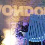 La sede que acogió el evento fue la Fundació per Amor a l’Árt cuyo valor social como centro de referencia en el ámbito del arte contemporáneo ayudó a crear una fluida dinámica entre diseño y cultura. La cuidada ambientación marina compuesta por proyecciones, juegos de luces, colores y hasta una estructura central erigida con varias de sus nuevas piezas sumergían de lleno a los invitados en el universo de Vondom Revolution.