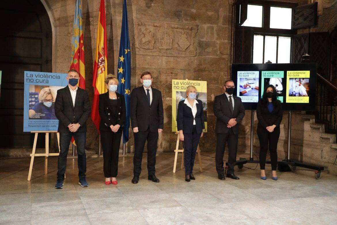 El res­pon­sa­ble del Con­sell ha par­ti­ci­pa­do en el Palau de la Gene­ra­li­tat en la pre­sen­ta­ción de la cam­pa­ña “Res­pe­te­mos a quien nos cui­da”, impul­sa­da por Pre­si­den­cia de la Gene­ra­li­tat en cola­bo­ra­ción con los cole­gios pro­fe­sio­na­les para “gene­rar con­cien­cia social” sobre la nece­si­dad de res­pe­tar la labor que rea­li­za el per­so­nal de la Sani­dad.