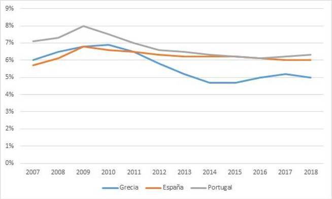 Gasto público en Sanidad sobre el PIB