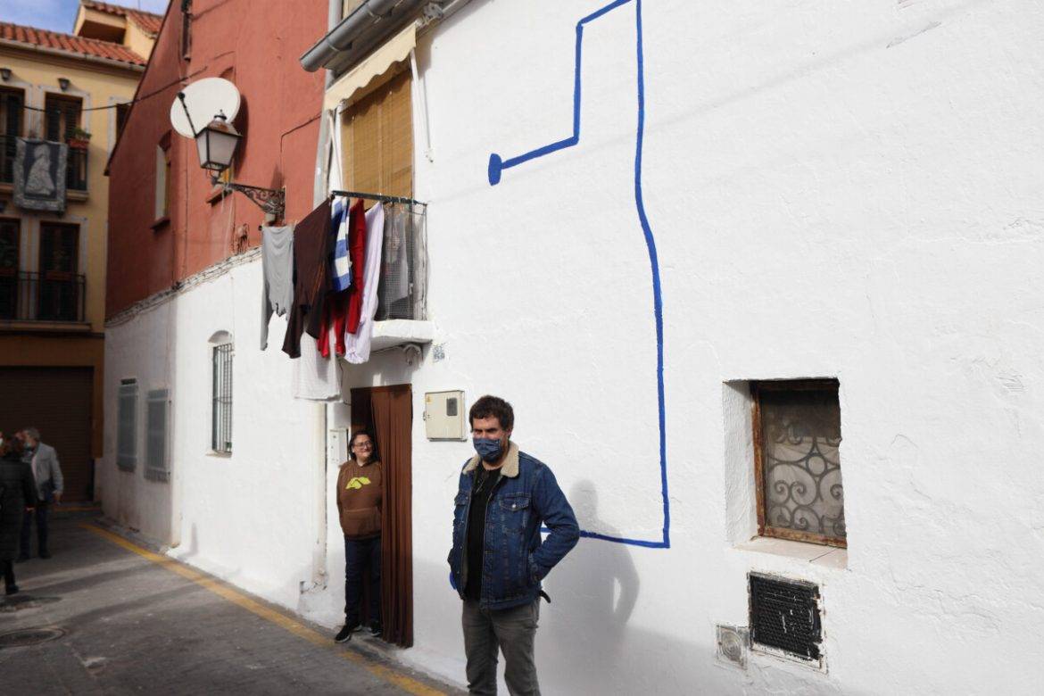 El que hem perdut, de Juan Antonio Cerezuela: instalación de focos de luz led de exterior y pintura mural foto-luminiscente sobre pared, con medidas variables (en la calle San Martín).