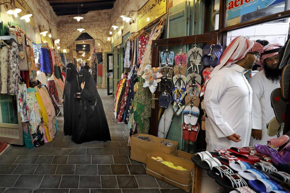 Mujeres musulmanas en el zoco de Doha. Aspecto exterior del Museo Nacional de Qatar, diseñado por Jean Nouvel.