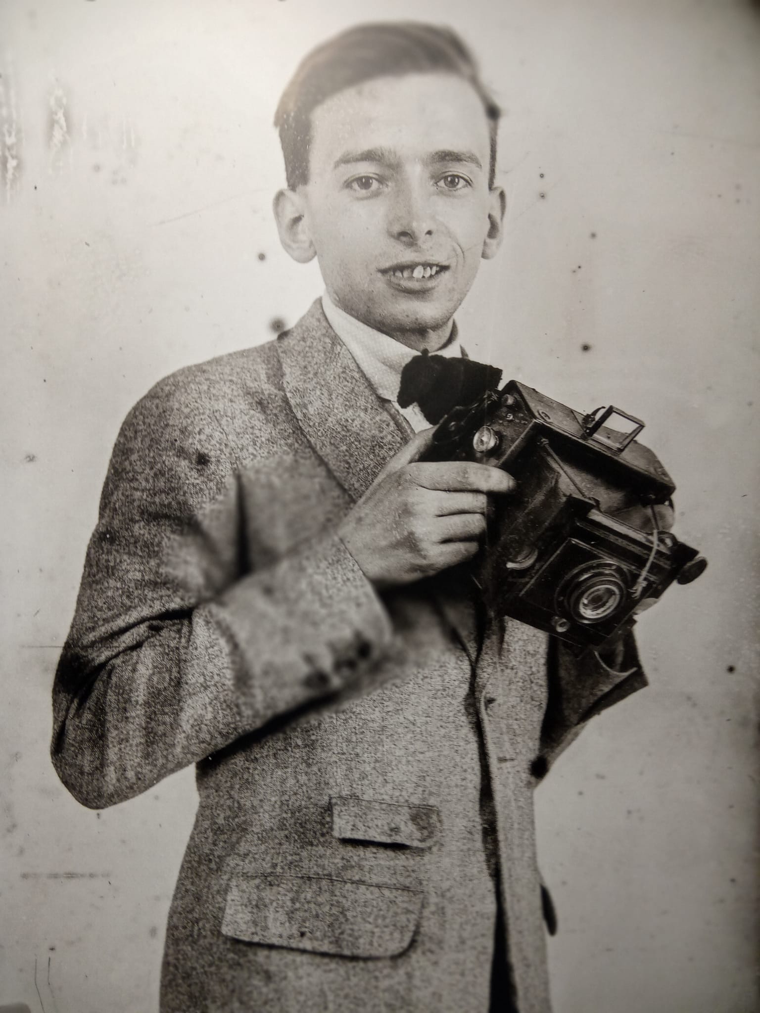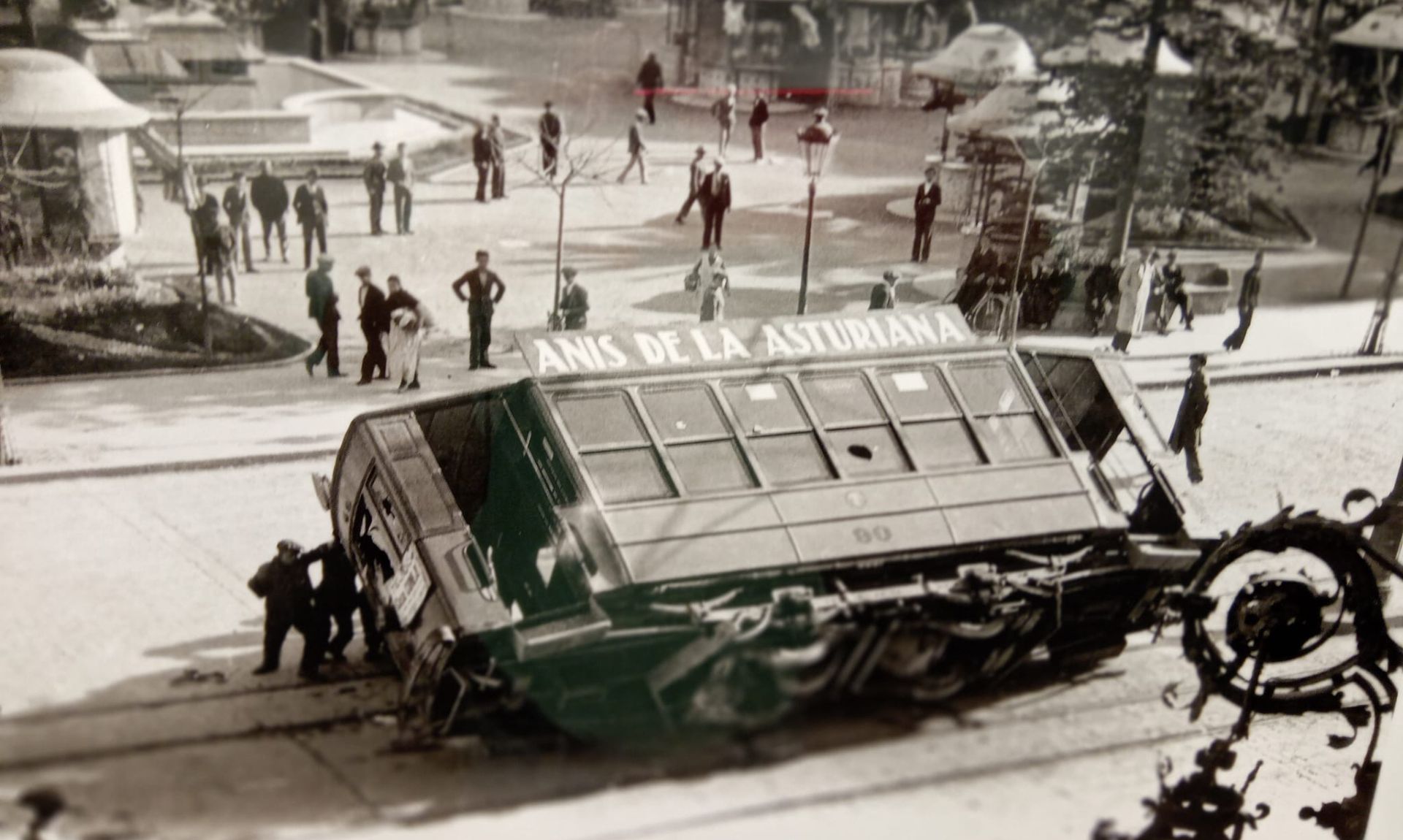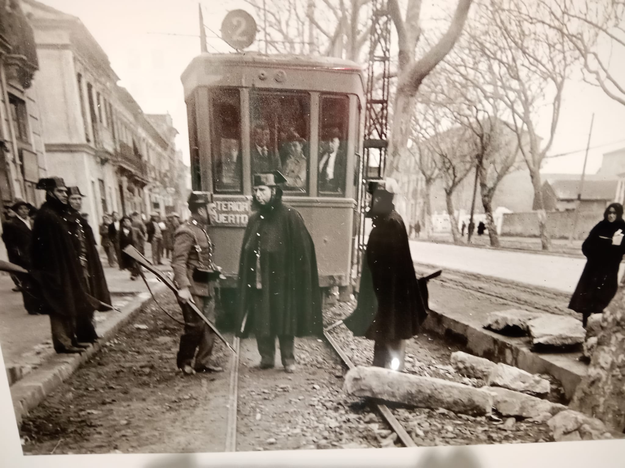 Resul­ta impre­sio­nan­te com­pro­bar como pudio mover­se el foto­pe­rio­dis­ta con el equi­po vetus­to que se usa­ba en aque­llos tiem­pos en el mun­do de la foto­gra­fía. Al ini­cio de la expo­si­ción, comi­sa­ria­do por Óscar Nava­rro, lo pode­mos ver muy joven y son­rien­te empu­ñan­do orgu­llo­so su cáma­ra Zeiss Ert­ne­mann de pla­cas de vidrio con su corres­pon­dien­te bas­ti­dor de made­ra. Con esa cáma­ra se aden­tró en uno de los prin­ci­pa­les esce­na­rios de la revuel­ta valen­cia­na que fue el barrio del Caban­yal. Allí los obre­ros por­tua­rios y los miem­bros de la Unión Naval de Levan­te vol­ca­ron tran­vías en la calle de la Rei­na y tam­bién en el cen­tro de Valen­cia. Tum­bar tran­vías, un icono per­du­ra­ble de las revuel­tas revo­lu­cio­na­rias y urba­nas del siglo pasa­do y que reali­dad no ha cam­bia­do mucho en estos tiem­pos.