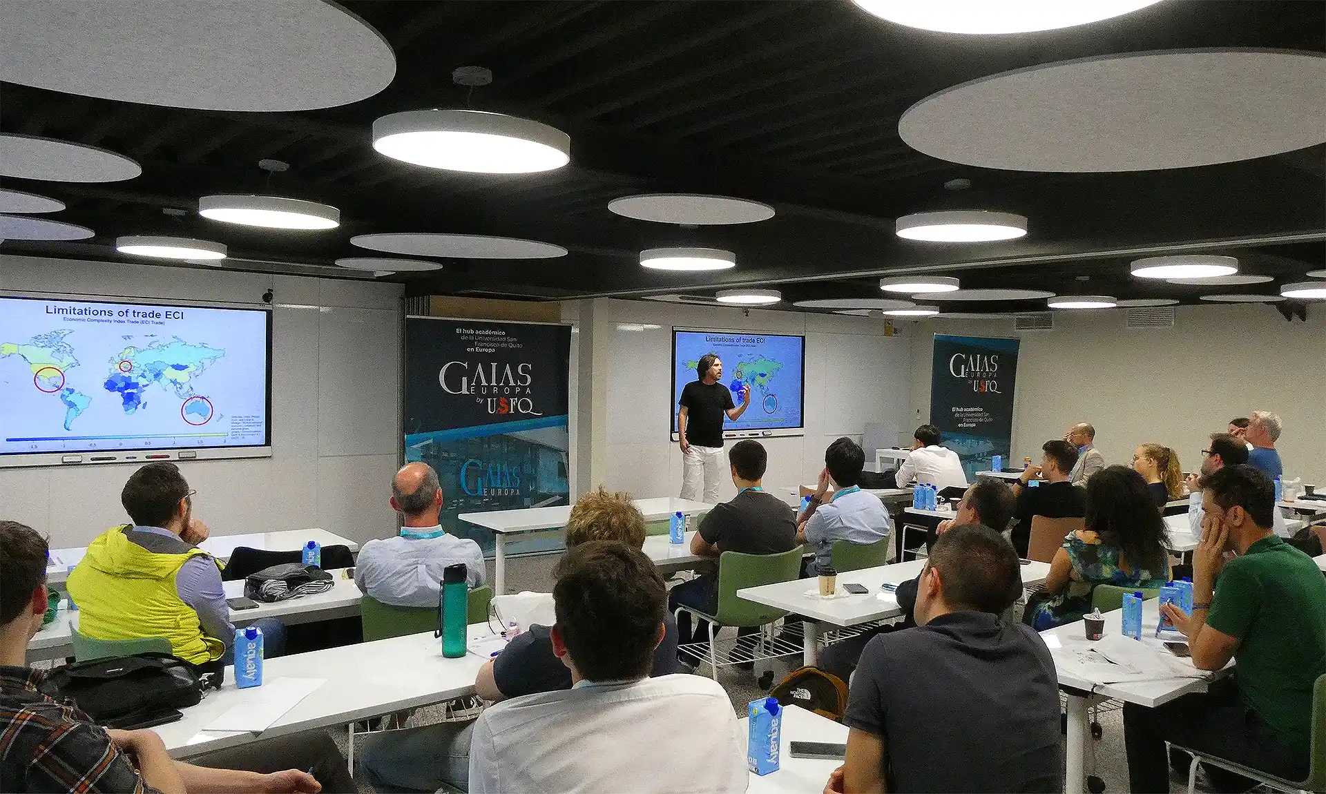 Cesar Hidalgo habla sobre la economía global de las plataformas, en el Workshop on Economic Complexity de Gaia Europa, en Valencia.
