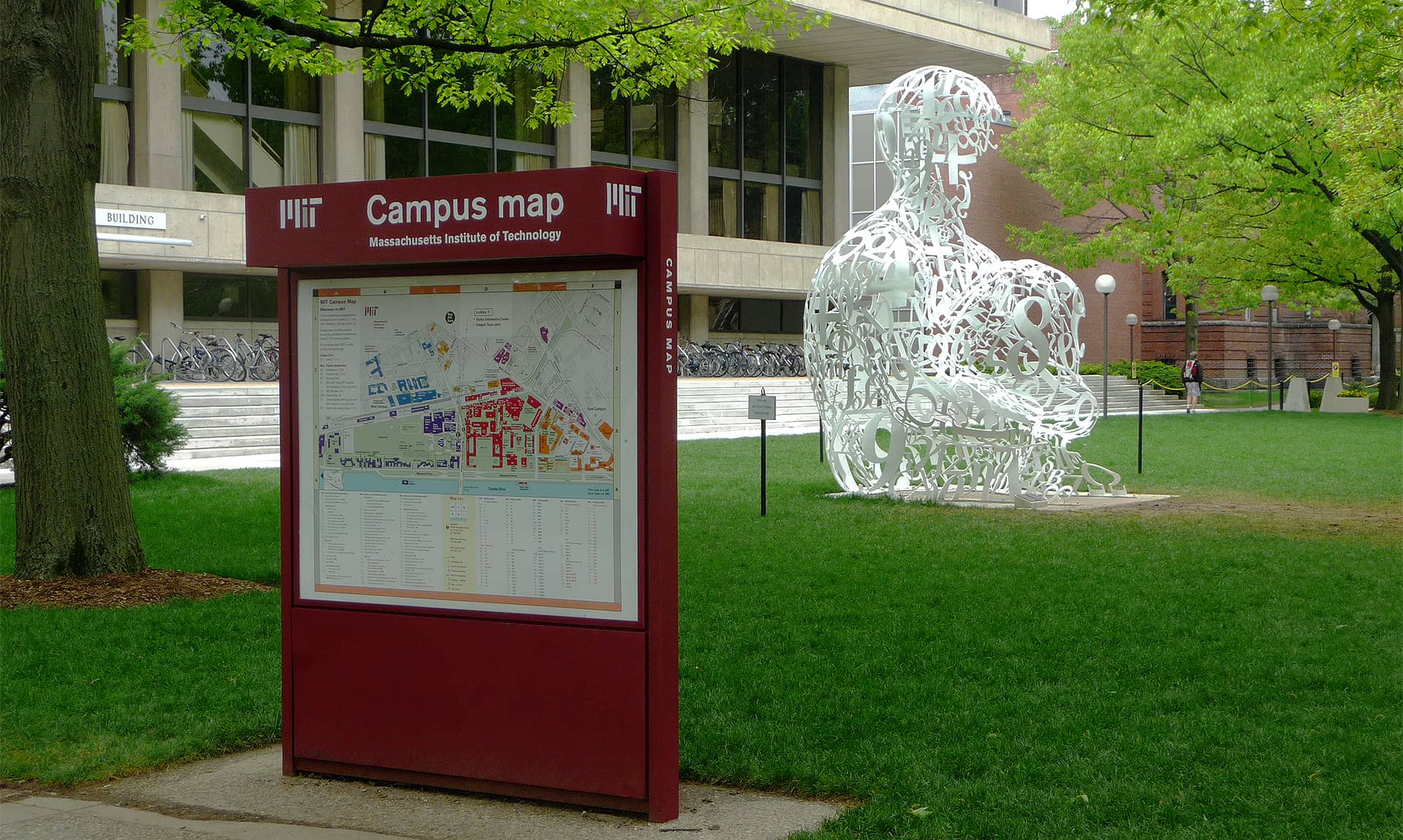 Imagen superior: campus del MIT, frente a su acceso principal de Massachusetts Av., con la escultura del artista español Jaume Plensa donada anónimamente por un ex-alumno del MIT. Foto: Adolfo Plasencia
