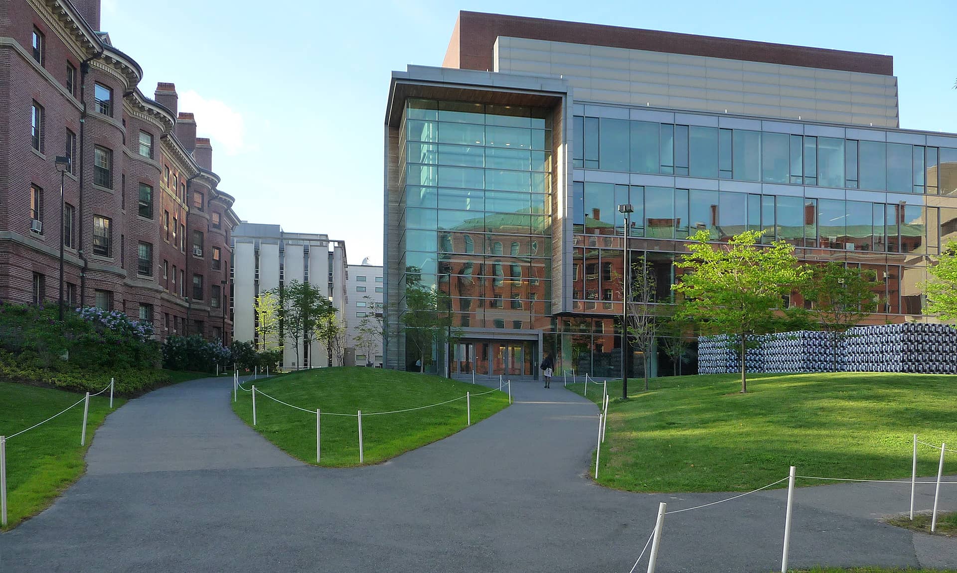 Imagen exterior del edificio Northwest Science Building en el campus de Harvard. A la derecha, junto al edificio, sobre el césped se puede ver una obra del artista y disidente chino Ai Weiwei. Foto. Adolfo Plasencia.