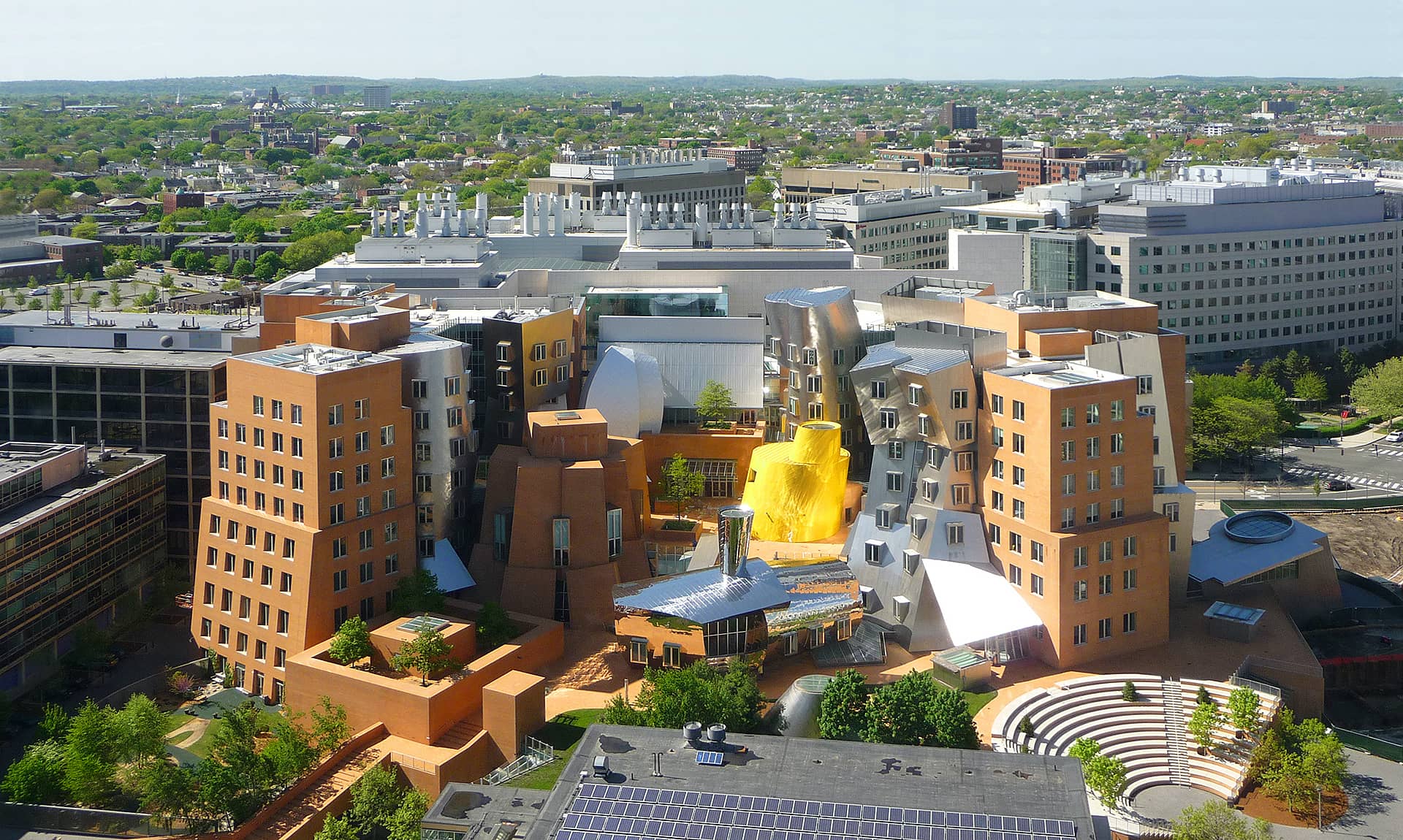 Panorámica desde el sur del edificio del MIT CSAIL (MIT Comouter Science and Artificial Intelligence Laboratory), obra del arquitecto Frank Gerhy en el campus del MIT. Foto: Adolfo Plasencia