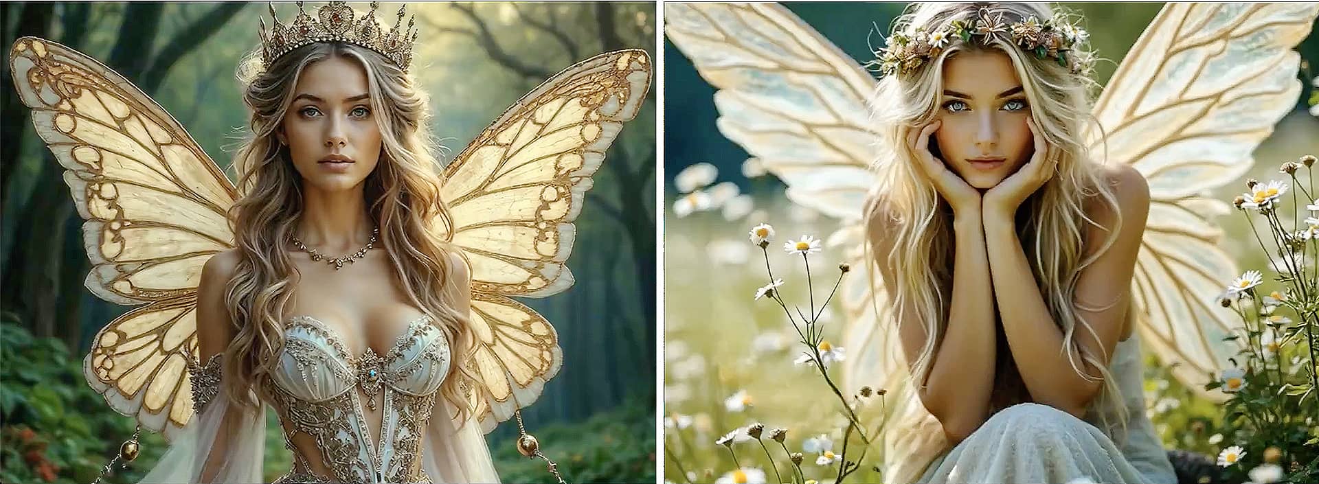 Foto superior: Estas imágenes de bellas hadas que aparecen en un vídeo, no han sido fotografiadas, ni filmadas, por ninguna cámara, sino generadas por los algoritmos del Modelo Grok 2.0 y animadas por el Kling AI.