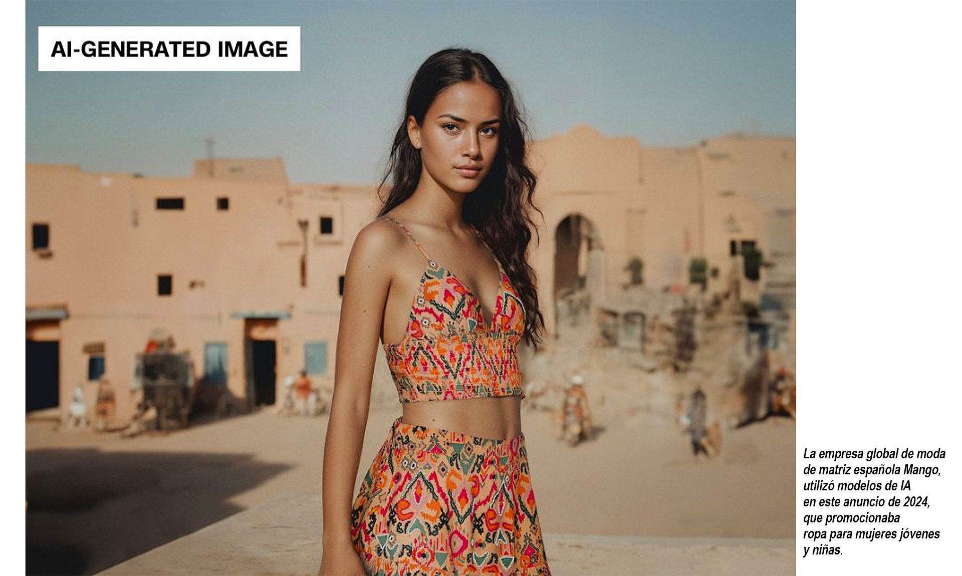 El menor tiempo en el mundo de la moda, además de que algo sea más barato, es muy importante. Esencial. Guess no es la única marca que ha utilizado modelos de IA. El pasado julio, la empresa global de moda de matriz española Mango presentó su primera campaña generada con IA para promocionar ropa para adolescentes. Una imagen de la campaña es la de arriba de este párrafo, en la que una joven luce un colorido conjunto. Pero esa joven no existe. No es real. Si bien las prendas mostradas eran reales y estaban disponibles para su compra, la modelo fue generada íntegramente con IA. Como informó también CNN Style, en una entrevista con Bloomberg en octubre de 2024, el CEO de Mango, Toni Ruíz, justificó el uso de las modelos generadas por IA, afirmando que la publicidad se podía crear con mayor rapidez. «Se trata de crear contenido más rápido» dijo Ruíz en la entrevista. Es decir, ir aún más rápidamente a profundizar en la fast fashion, la moda super-rápida. CNN intentó conseguir su opinión al respecto, pero la empresa Mango no respondió a su solicitud de comentarios.