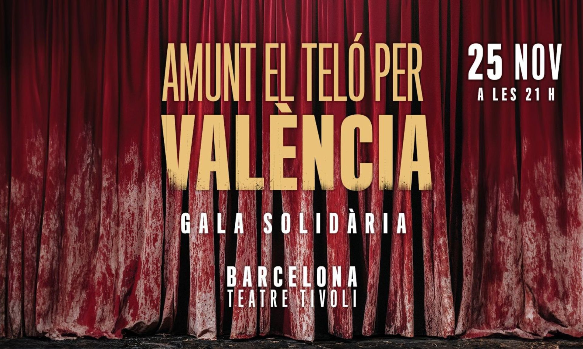 “Amunt el teló per València” se celebrará el 25 de noviembre en el teatro Tívoli de Barcelona.