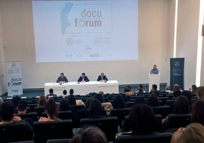 Docufòrum és un format audiovisual impulsat pel Vicerectorat de Projecció Territorial i Societat i realitzat en alta definició (HD) pel Taller d’Audiovisuals de la Universitat (TAU), que aborda amb un estil documental temes d’actualitat i interés social. Els documentals, d’una duració de 20 minuts, recullen opinions d’especialistes tant de la Universitat de València com de l’àmbit social o empresarial valencians.