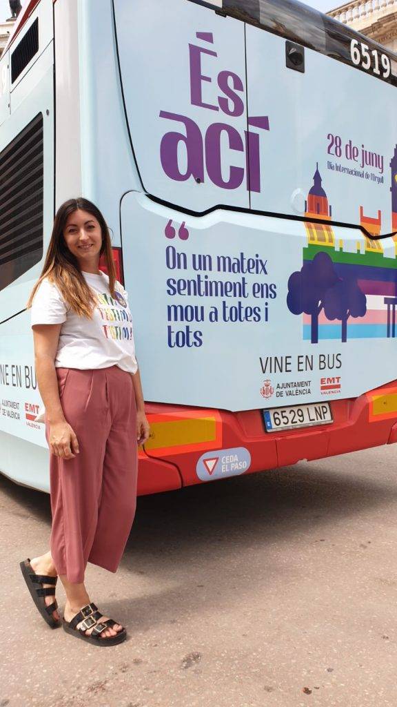 Kiara Figueredo es una mujer que vino de Cuba y es la activista trans que pone el rostro “por travelo”. Eva Ferriols pone el rostro “por bollera”, profesora de instituto y parte de Lambda. Adrián Mora es arquitecto y activista digital LGTB+, y pone el rostro “por maricón”. La campaña ha sido ideada y realizada por el estudio de diseño y comunicación Xinxeta.