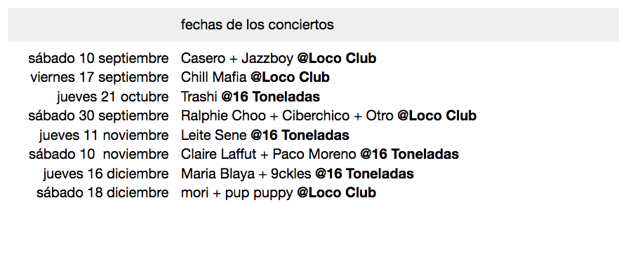 El ciclo consta de 8 eventos en dos salas fundamentales para la ciudad: Loco Club+ 16 Toneladas. El ciclo cuenta con el apoyo de Vibra Mahou, la plataforma de música de Mahou Cinco Estrellas.