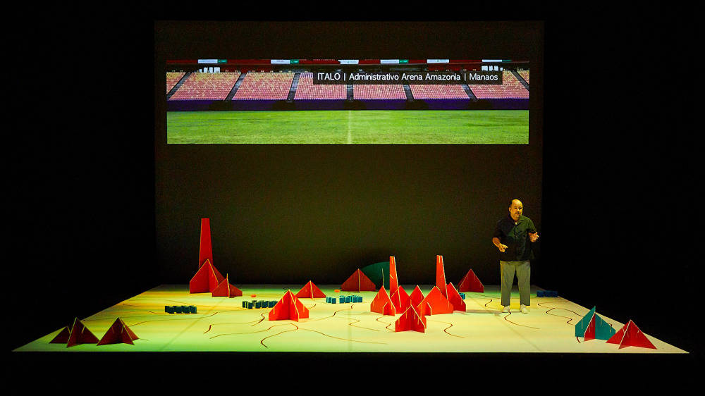 En esta ocasión, el escenario acogerá una reproducción muy particular de la Amazonia brasileña para reflejar el sufrimiento de los nativos ante la construcción de dos infraestructuras faraónicas, un teatro de ópera y un estadio de fútbol. A su vez, el montaje mostrará la realidad de la ciudad de Manaos, capital del estado de Amazonas, convertida en un importante centro financiero que atrae a todo tipo de multinacionales.