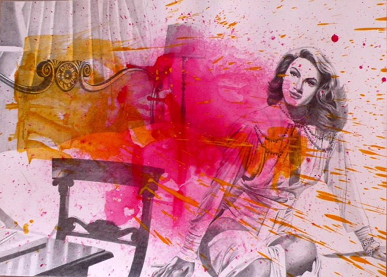 Cuqui Guillem, para Doble o nada, presenta obra de la serie “mujeres en hoteles”, espacios neutros donde se cruzan vidas y en los cuales “la espera” es la protagonista. Cuqui, fiel a su proceso de creación, tiene como punto de reflexión en la mujer como su principal iconografía con discurso crítico.