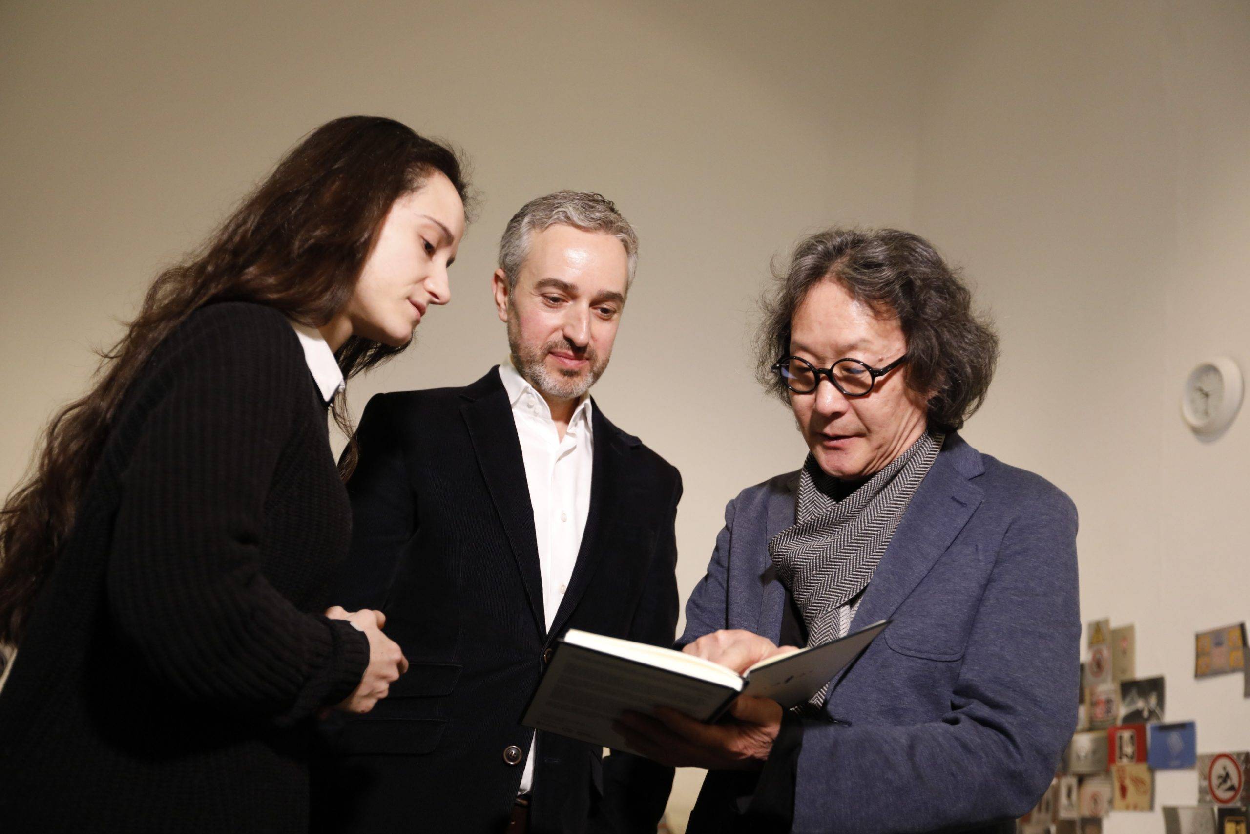 El direc­tor del Cen­tre del Car­me, José Luis Pérez Pont, acom­pa­ña­do por Xu Bing, ha pre­sen­ta­do el libro Book from the Ground, la pri­me­ra publi­ca­ción escri­ta úni­ca­men­te con emo­ti­co­nos, una nove­la grá­fi­ca que ha sido edi­ta­da por el Con­sor­ci de Museus de la Comu­ni­tat Valen­cia­na, con moti­vo de la expo­si­ción Art for the peo­ple.