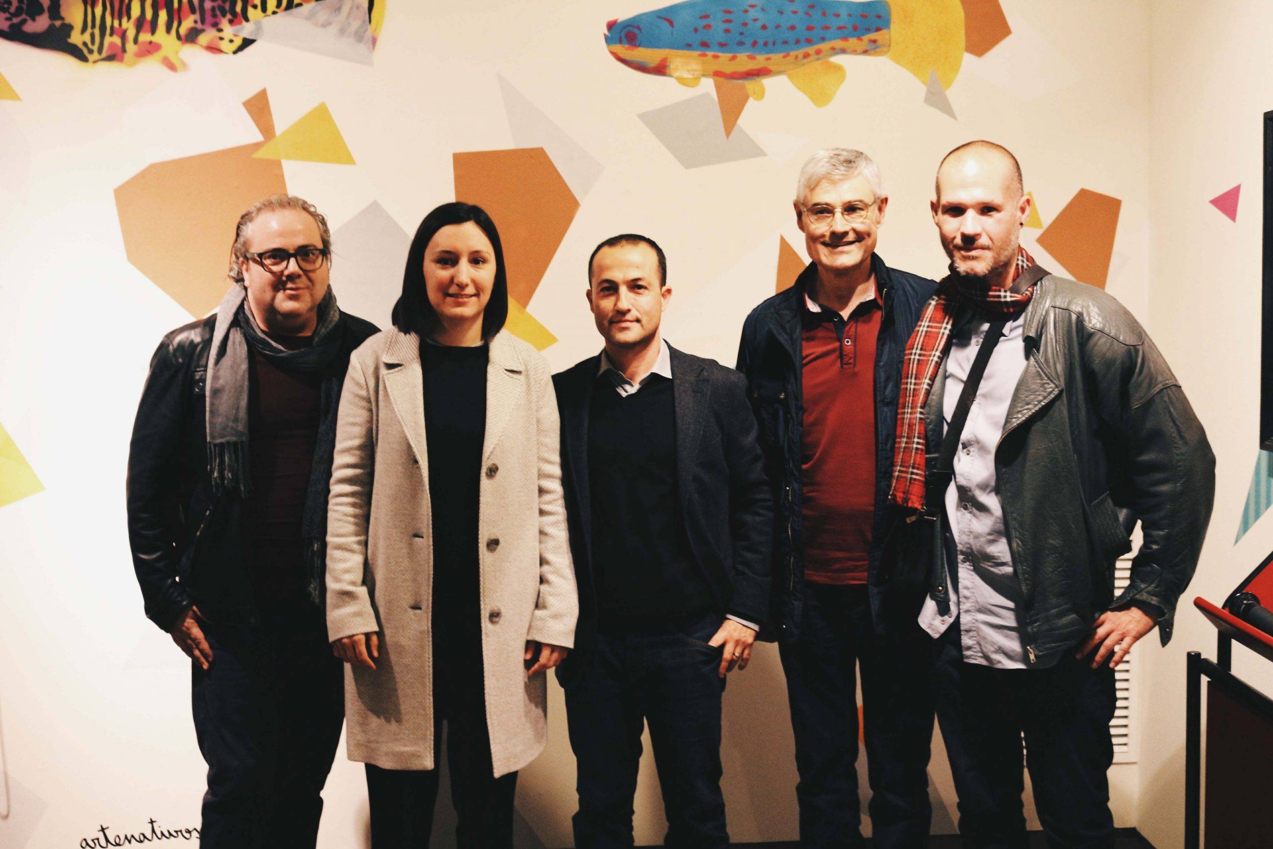 Alex Villar, Mar­ta Tren­zano, Pau Mon­tal­và, Pere Blan­co y Luis Sal­va­dor en la inau­gu­ra­ción de la mues­tra.