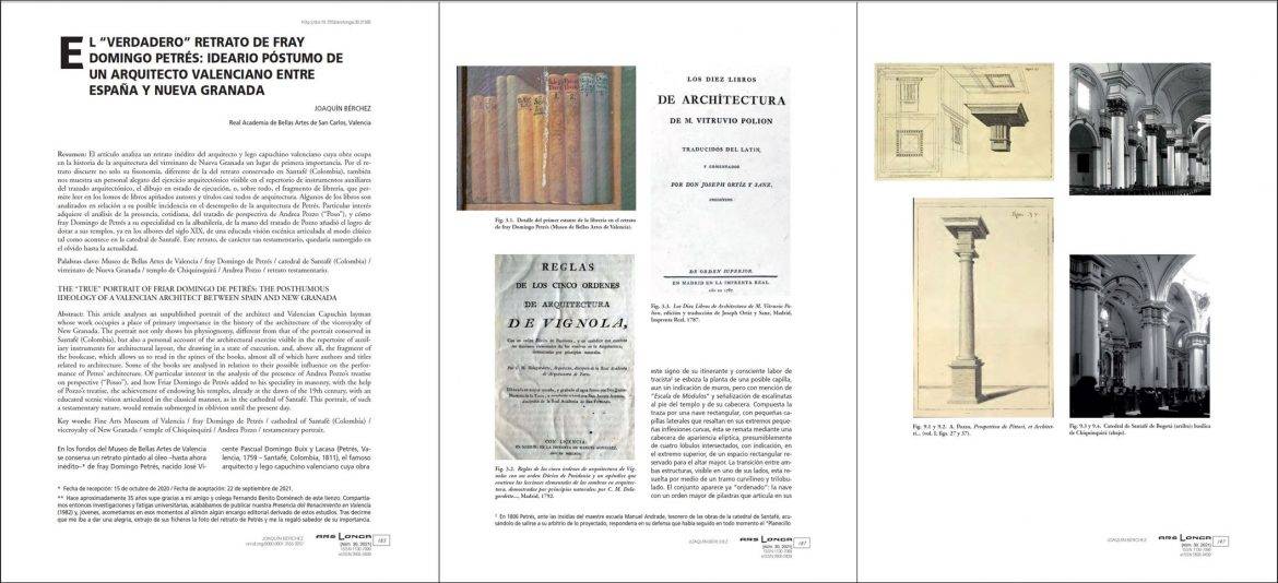 El último número de la revista Ars Longa del Departament d’Història de l’Art de la Universitat de València publica el artículo “El ‘verdadero’ retrato de Fray Domingo Petrés: ideario póstumo de un arquitecto valenciano entre España y Nueva Granada”, del historiador Joaquín Bérchez. En dicho estudio se da a conocer y se analiza, por primera vez, un retrato al óleo del importante arquitecto y lego capuchino valenciano, cuya obra ocupa en la historia de la arquitectura del virreinato de Nueva Granada un lugar de primera importancia a la vez que supone un brillante cierra del nutrido y amplio capítulo arquitectónico hispano en América.