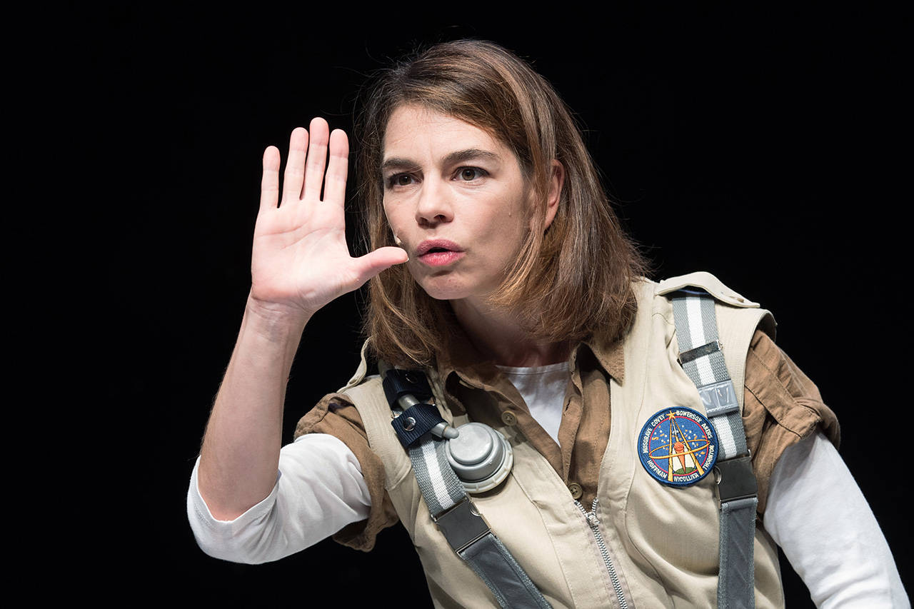 De la mano de Isabelle Stoffel (recién nominada a los Premios Mihura) y Sigfrid Monleón llega En tierra (Grounded), un texto muy interesante hasta ahora sin estrenar en España, aunque desde su estreno en el festival de Edimburgo en 2013 ya ha sido representado en medio mundo, desde Etiopía hasta Broadway con Anne Hathaway. Actualmente se prepara su versión operística en el Metropolitan de Nueva York y su adaptación al cine en una película de Hollywood producida e interpretada por Anne Hathaway.