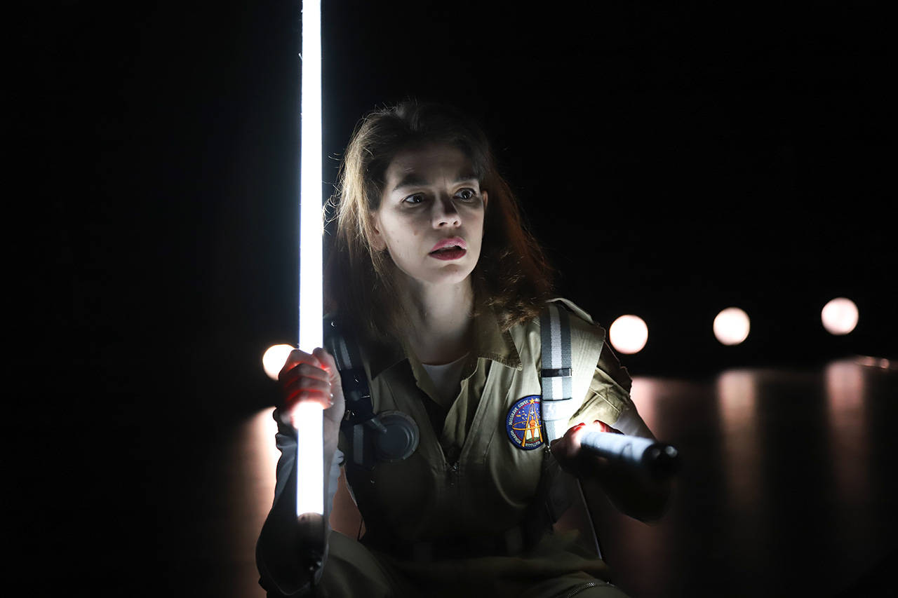 De la mano de Isabelle Stoffel (recién nominada a los Premios Mihura) y Sigfrid Monleón llega En tierra (Grounded), un texto muy interesante hasta ahora sin estrenar en España, aunque desde su estreno en el festival de Edimburgo en 2013 ya ha sido representado en medio mundo, desde Etiopía hasta Broadway con Anne Hathaway. Actualmente se prepara su versión operística en el Metropolitan de Nueva York y su adaptación al cine en una película de Hollywood producida e interpretada por Anne Hathaway.