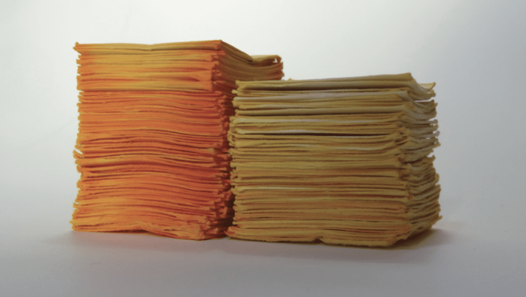 En el trabajo de Leopoldo Mazzoleni el movimiento se expresa como flujo. Es un proceso que podría continuar, renovarse como una reflexión. En este caso el movimiento lo decide el artista, pero ejecuta el agua que guía al color a través de la materialidad del papel. La obra que presenta en La Fábrica de Hielo se titula “Diagrama de flujo, amarillo”.
