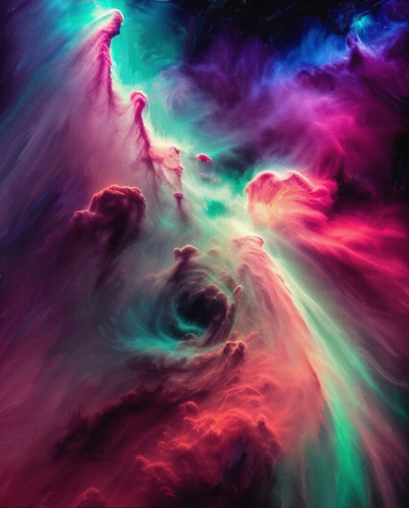 «Awe­so­me Uni­ver­se» 2023 (oil, acry­lic and pig­ments on can­vas) 146 x121 cm.