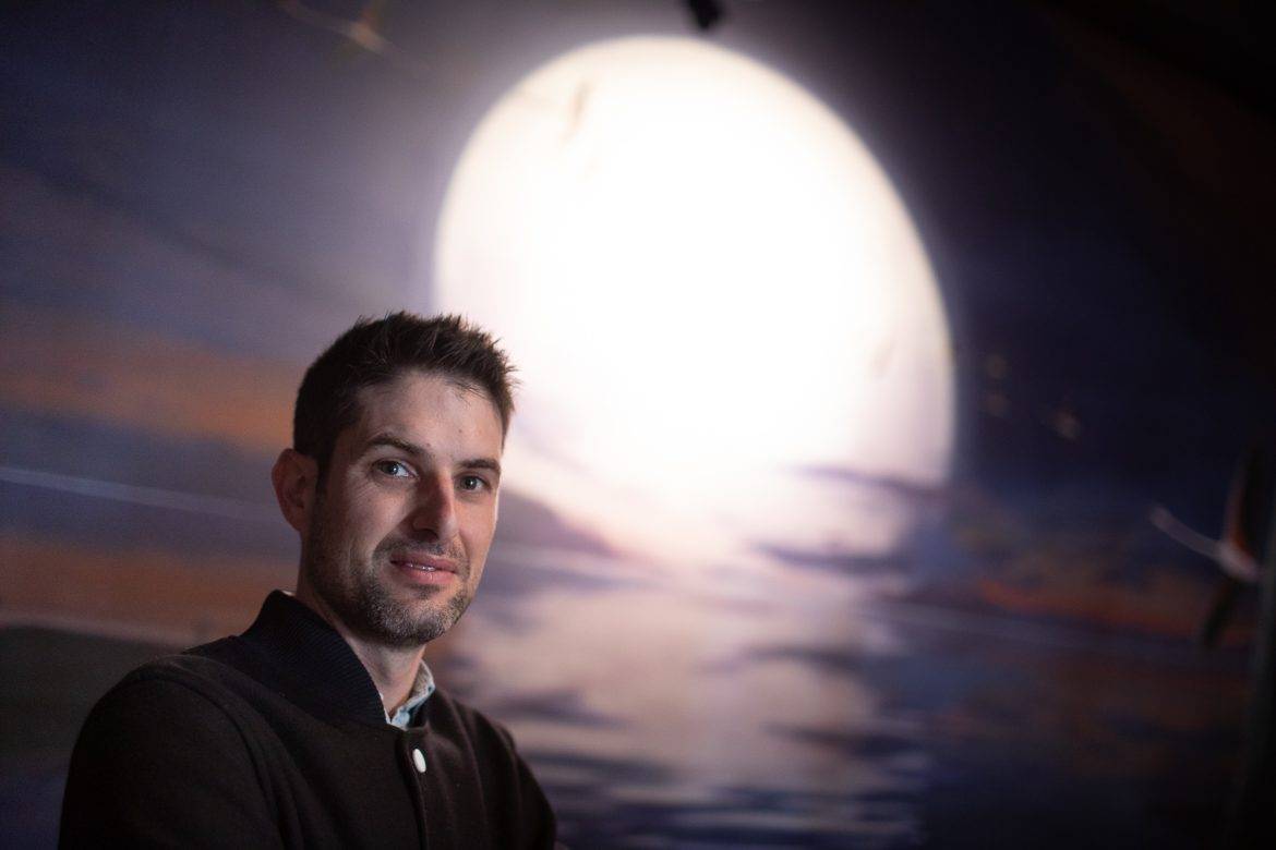 Los muros intervenidos de la sala recrean fondos acuáticos, amaneceres y ocasos bañados de luz, mediante majestuosas transiciones de colores. Una dinámica composición que busca mostrar la esencia de los matices de un entorno como la Albufera que según el artista “para la gran mayoría de los valencianos la asociamos más con ir a tomar una paella al Palmar y desconocemos toda la historia de este lugar al que especialistas de toda Europa acuden para estudiar los ciclos migratorios de las aves, que paran allí de camino a África”.
