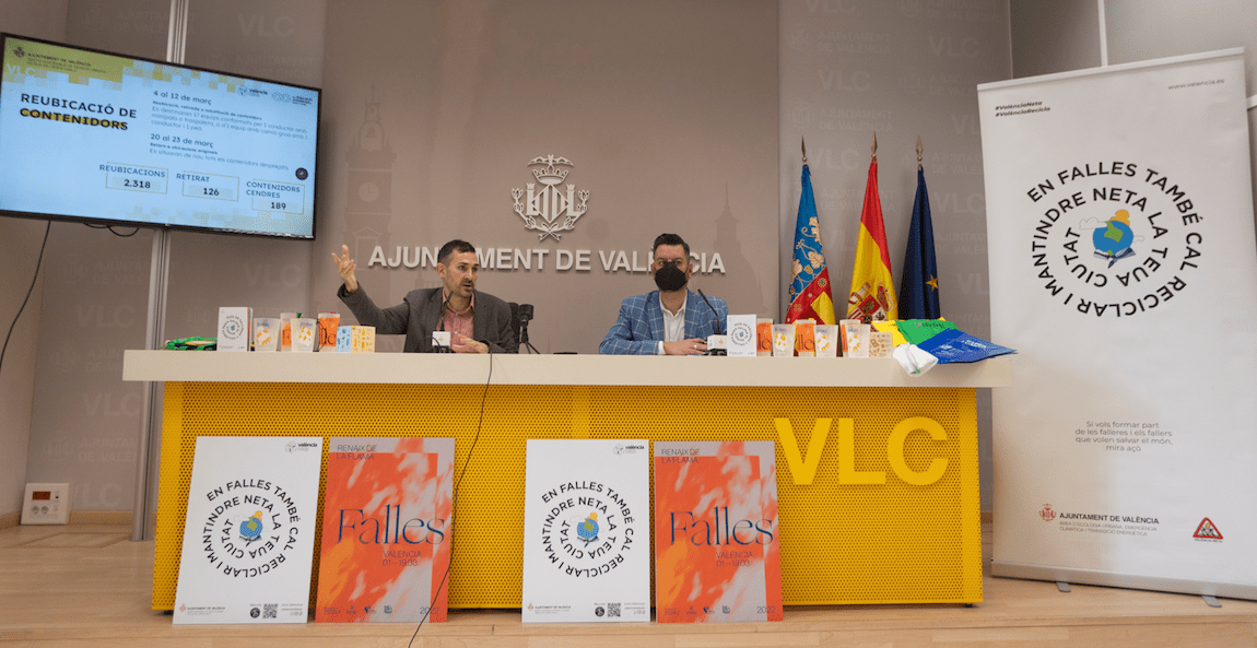 El vicealcalde i regidor d’Ecologia Urbana, Sergi Campillo, ha presentat el dispositiu especial de neteja i recollida de residus per a les Falles 2022 que, amb un pressupost de més de 1,7 milions d’euros, “és el més alt de la història de l’Ajuntament de València”. Acompanyat pel regidor de Cultura Festiva i president de la Junta Central Fallera, Carlos Galiana, Campillo ha explicat que la dotació de la campanya de neteja i recollida de residus per a enguany suposa un increment del 14,1% respecte a les festes de 2019, les d’abans de la pandèmia i, tal com ha subratllat, “recupera tota la potència d’unes festes pràcticament normals”.