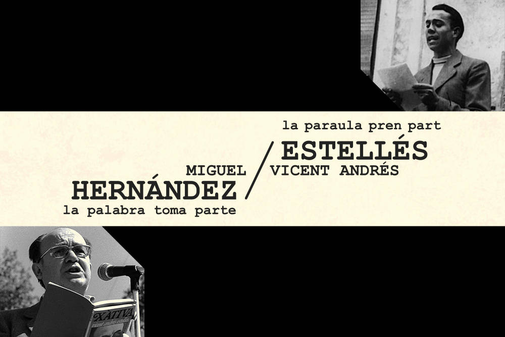 El proyecto expositivo La palabra toma part/La paraula pren part establece un diálogo entre dos de nuestros más importantes referentes literarios del siglo XX, cada uno en una de nuestras lenguas oficiales: Vicent Andrés Estellés y Miguel Hernández.