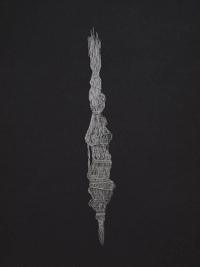 Bajo el título Dentro de un agua extraña, mi sombra, la artista iraní propone una aproximación silenciosa e íntima a la creación artística en su faceta más sutil y poética. Lo hace, principalmente, en el campo del dibujo y su relación con otros lenguajes como el grabado, la escritura y la escultura; utilizando materias que van desde el papel o el cobre, hasta el barro. En sus piezas, Salehi ‑que en la actualidad reside entre Madrid y Nueva York- pretende reflejar la relación del ser humano con la memoria, así como el permanente interés de este por dejar su huella en la historia a través de la palabra.