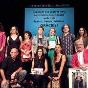El pal­ma­rés de esta undé­ci­ma tem­po­ra­da se com­ple­ta con el Pre­mio al Espec­ta­dor que ha recaí­do enCar­men Valls. El públi­co tam­bién reci­be su reco­no­ci­mien­to por apo­yar a las artes escé­ni­cas y por par­ti­ci­par en las vota­cio­nes de estos galar­do­nes ya que, entre todas las pape­le­tas reci­bi­das, se esco­ge una al azar y su auto­ra, en este caso, reci­be un abono para dis­fru­tar gra­tui­ta­men­te de todos los estre­nos de la pró­xi­ma tem­po­ra­da valo­ra­do en unos 300€.