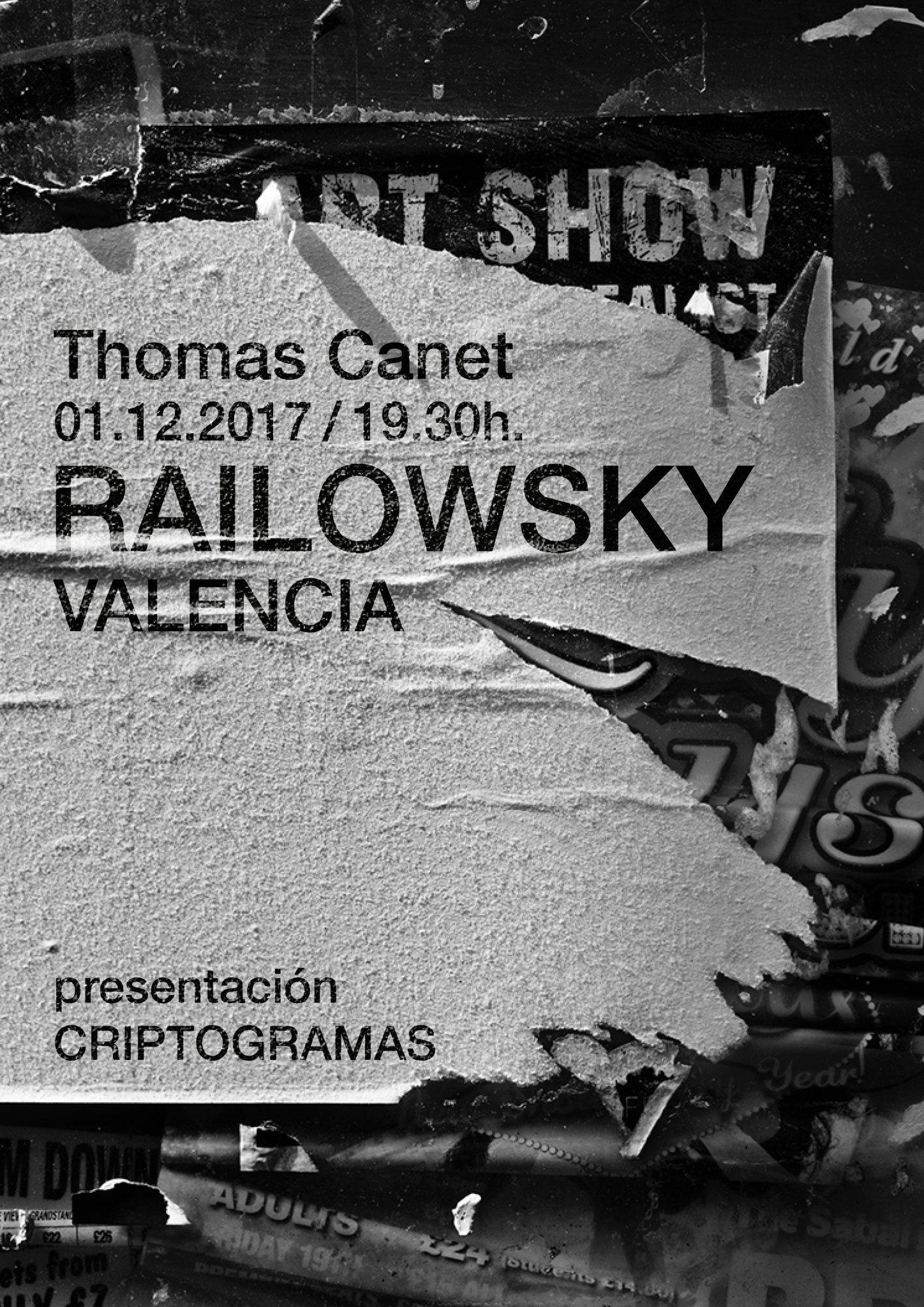 La librería Railowsky acogerá el viernes, 1 de diciembre, la presentación del libro Criptogramas. Se trata de su primer libro monográfico de fotografía que, dividido en cuatro volúmenes de 24 páginas, con 12 fotografías en blanco y negro cada uno, recoge una selección de 48 fotos que ha ido cazando en paredes, calles, carteles o texturas de España, Marruecos, Holanda e Inglaterra. En la presentación estarán Miguel David, Manuel Marzal y el propio autor.