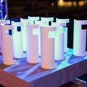 Estas piezas, diseñadas por Sara Oriola, fueron entregadas a los premiados en las categorías de moda, cultura y diseño. En este marco tan estrechamente relacionado con la creatividad y la innovación nace esta colaboración entre Tendencias y Porcelanosa Valencia. Con estos galardones la empresa de Villareal apuesta por el talento y el diseño de la ciudad, con un material tan revolucionario como lo es el Krion® K‑Life, capaz de mejorar la vida de las personas mediante sus cualidades antibacterianas y su tecnología fotocatalítica, que es capaz de mejorar activamente la calidad del aire. Una perfecta combinación entre diseño e innovación.