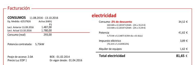 Leer el recibo para calcular el consumo de electricidad de la vivienda
