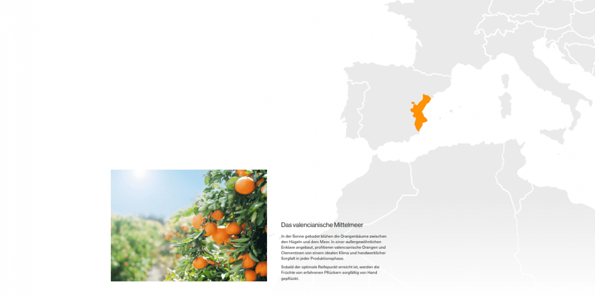 La “lan­ding page” para pro­mo­cio­nar las naran­jas valen­cia­nas en Ale­ma­nia.