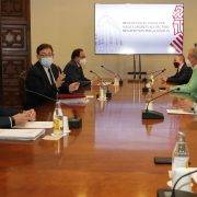 El president de la Generalitat ha mantenido una reunión con los agentes sociales y económicos acerca de la distribución de las ayudas a los sectores afectados por la pandemia.