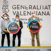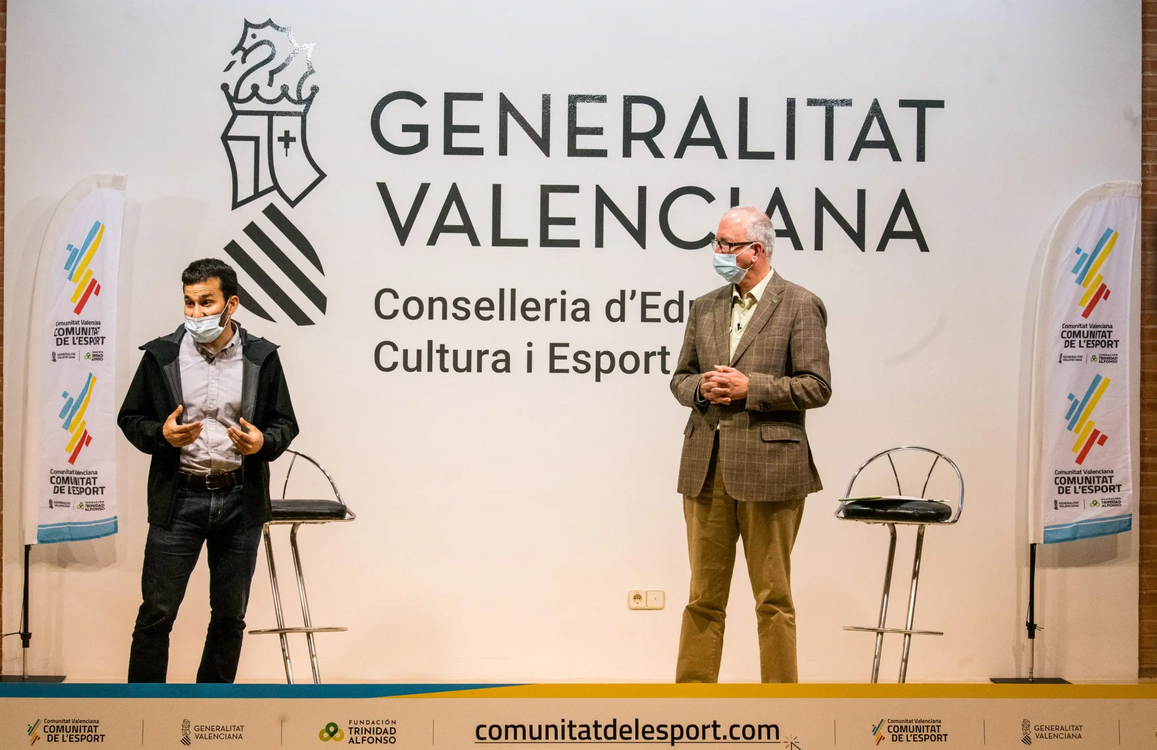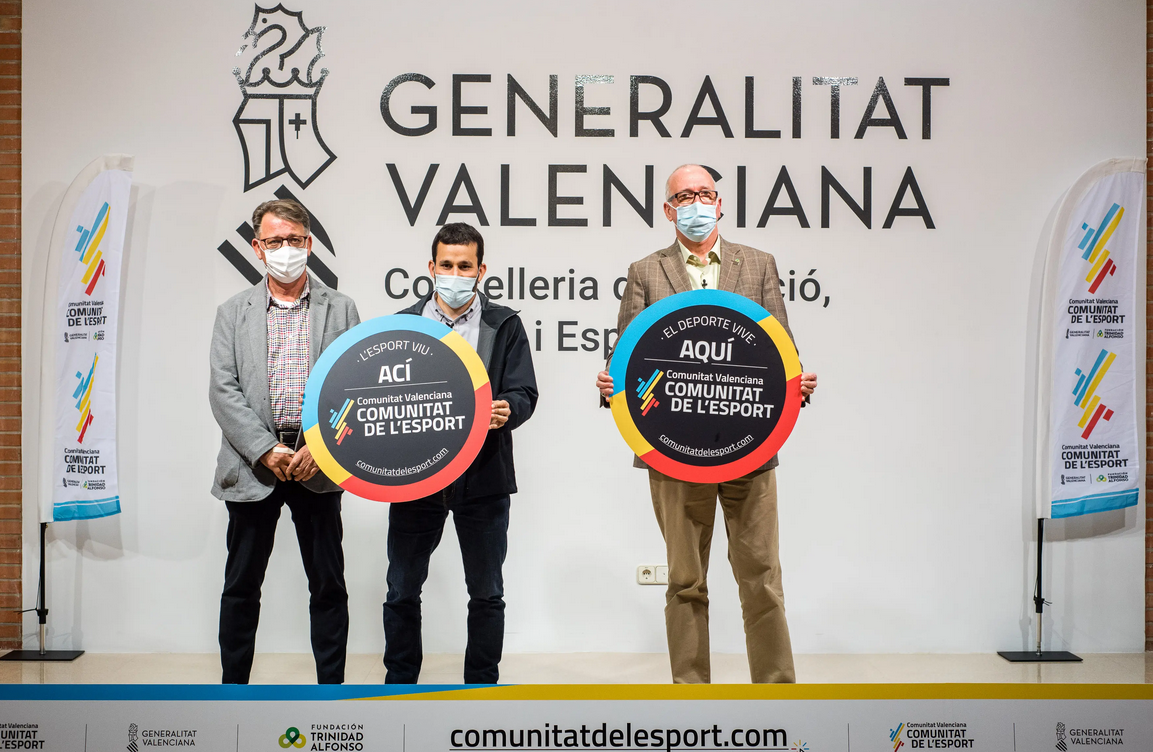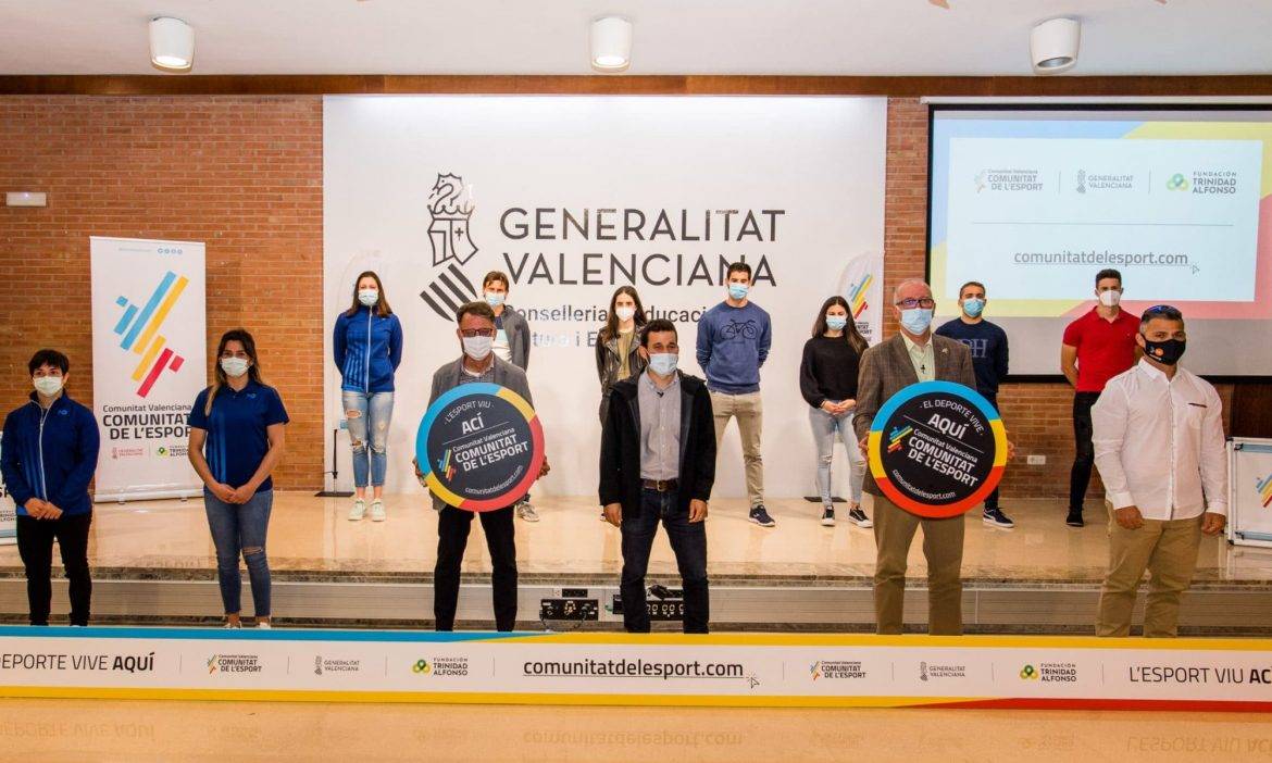 El conseller de Educación, Cultura y Deporte, Vicent Marzà, y el director de proyectos de la Fundación Trinidad Alfonso, Juan Miguel Gómez han presentado las novedades Comunitat de l’Esport, en un acto en la Conselleria de Educación, Cultura y Deporte, que ha contado con la asistencia de las federaciones valencianas, una docena de deportistas y representantes de entidades deportivas.
